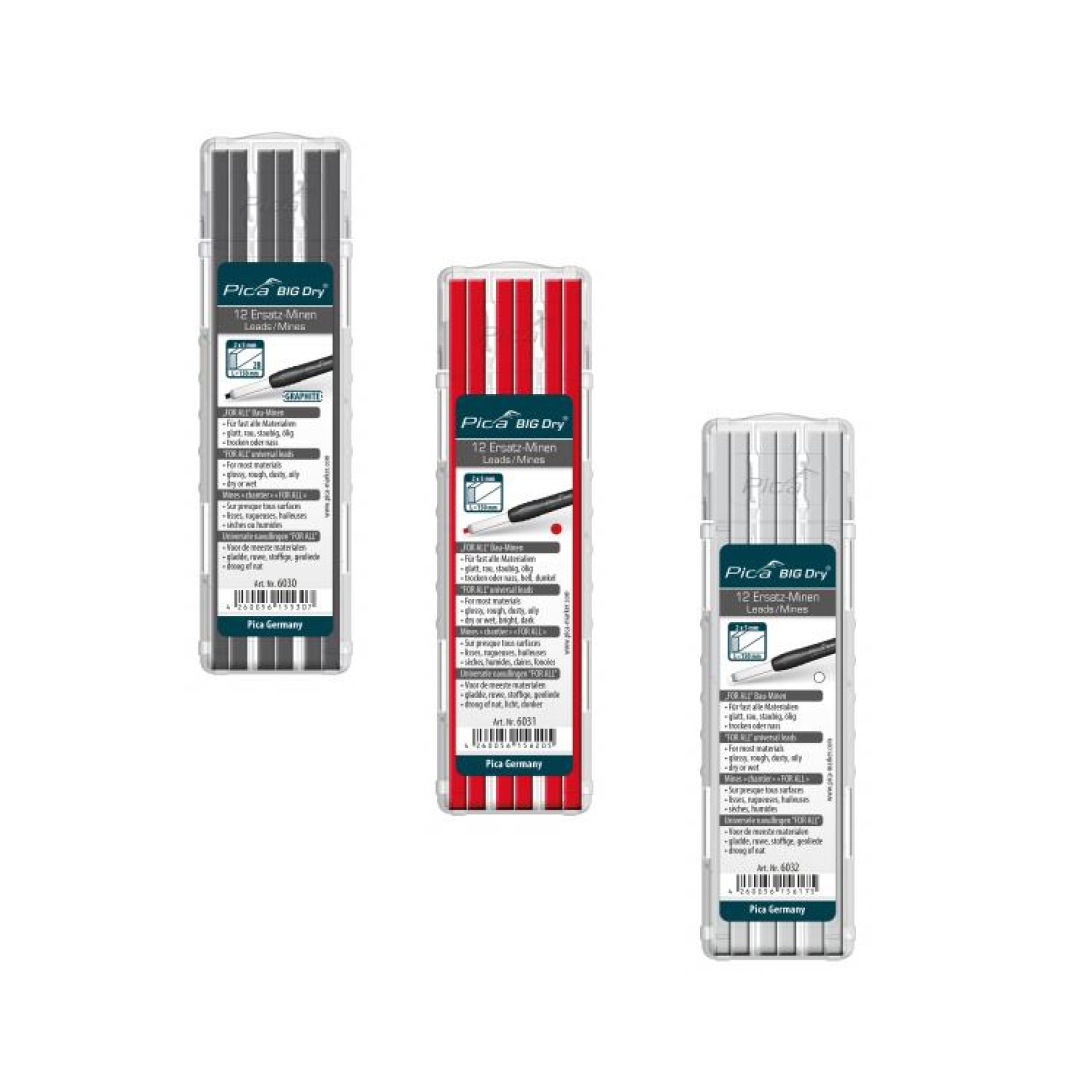 12 шт сменных стержней для любых поверхностей к карандашу Pica DRY BigDry в цветах графит, красный, белый